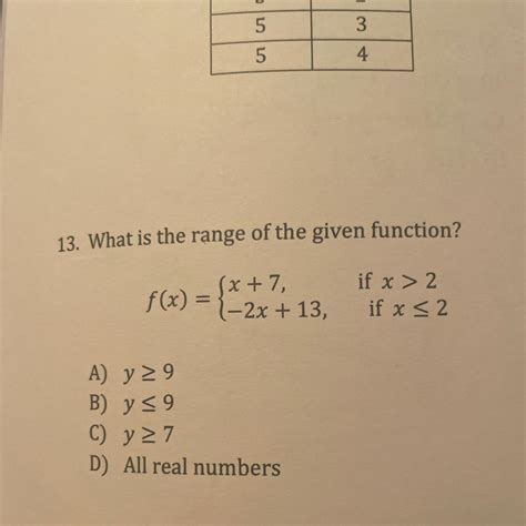 Select the correct answer What is the range of this function?
